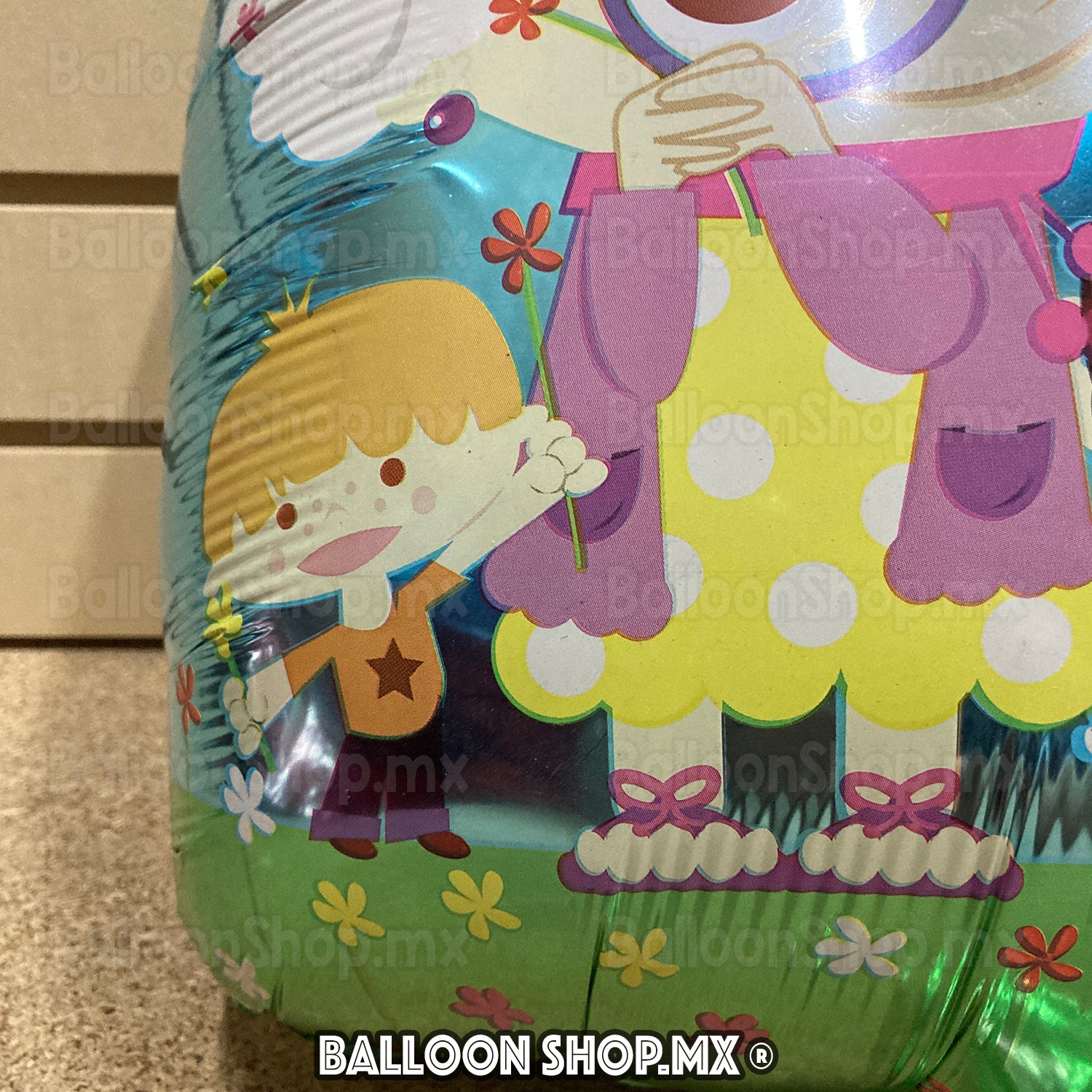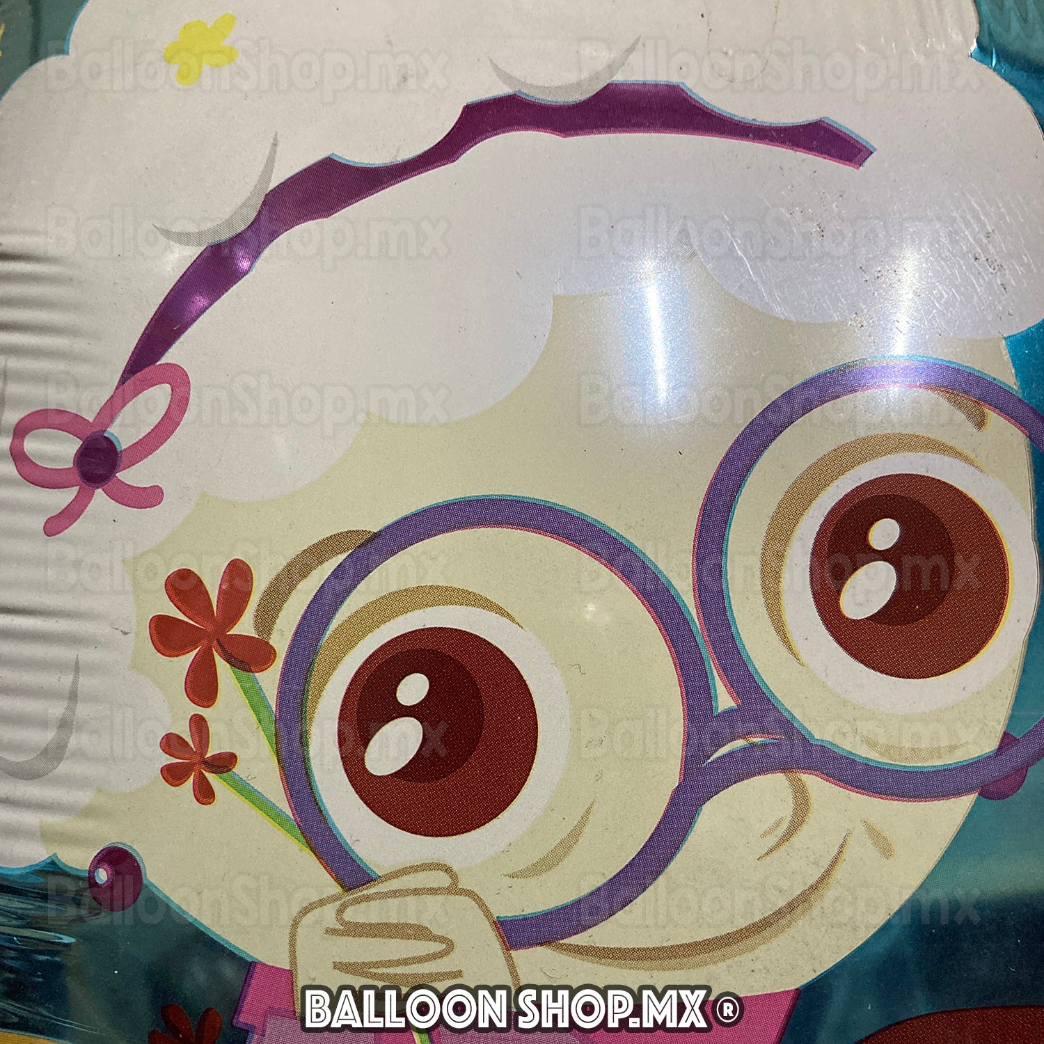 Globo cuadrado con la imagen de una abuelita rodeada de niños pequeños y la frase "Abuelita, te quiero mucho". Este globo puede ser usado para un cumpleaños, el día de las abuelos, una fecha especial o como un detalle.