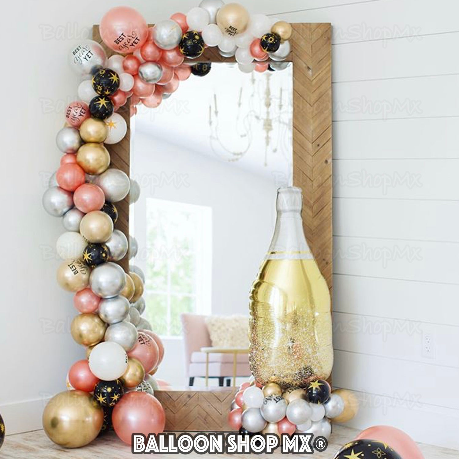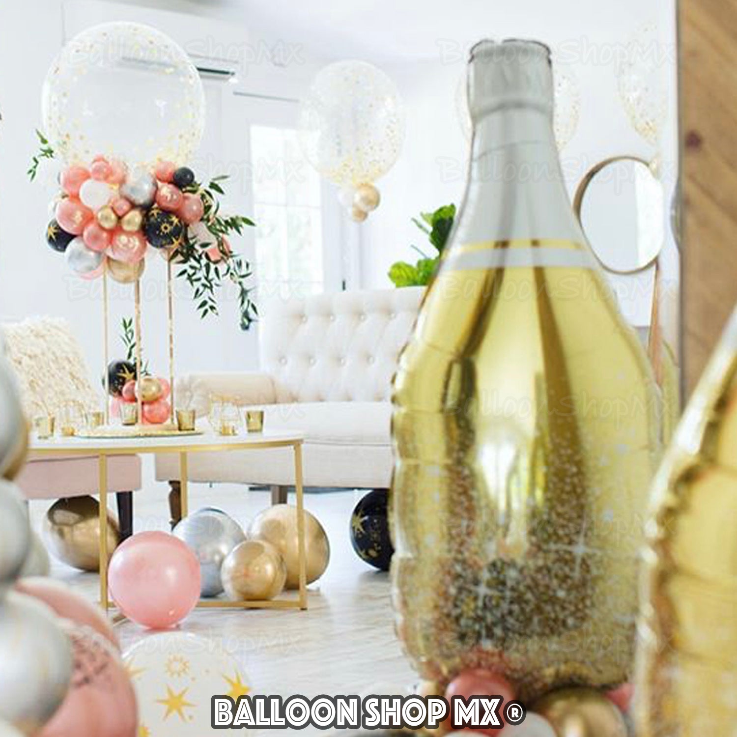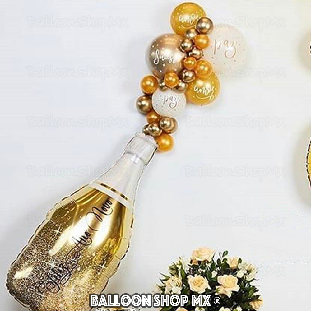 Para complementar el arreglo le recomendaríamos unos globos de látex (3 a 9 piezas) que puede encontrar en la sección de "Látex" o con otros diseños de globos metálicos. De igual forma se puede personalizar la botella con un mensaje impreso. Cualquier duda puede contactar a un asesor.