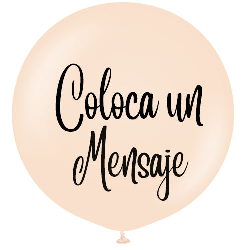 Globo burbuja de 55 centímetros de diámetro en color beige. Este globo cuenta con un mensaje personalizado en vinil.
