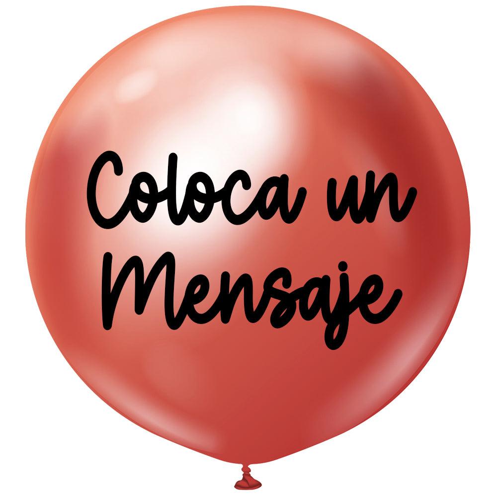 Globo burbuja de 55 centímetros de diámetro en acabado cromado rojo. Este globo cuenta con un mensaje personalizado en vinil a 2 caras.