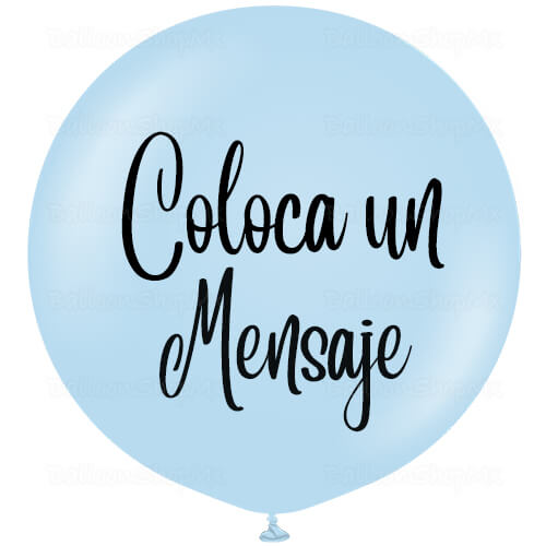 Globo burbuja de 55 centímetros de diámetro en acabado pastel color azul. Este globo cuenta con un mensaje personalizado en vinil. En colores pastel tenemos 6 tonos; rosa, azul, lila, amarillo, verde y salmón.