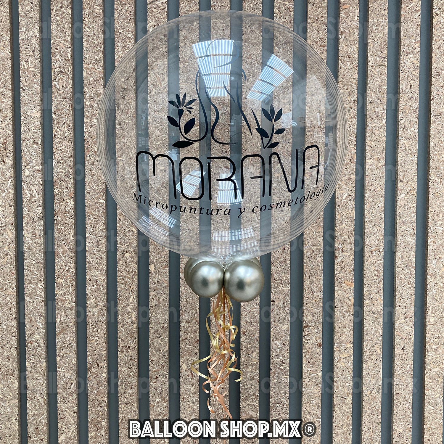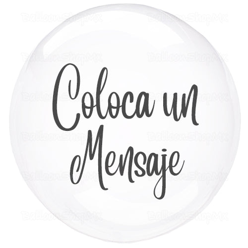Globo burbuja de 55 cm de diámetro en color transparente. Este globo cuenta con un mensaje personalizado en vinil.