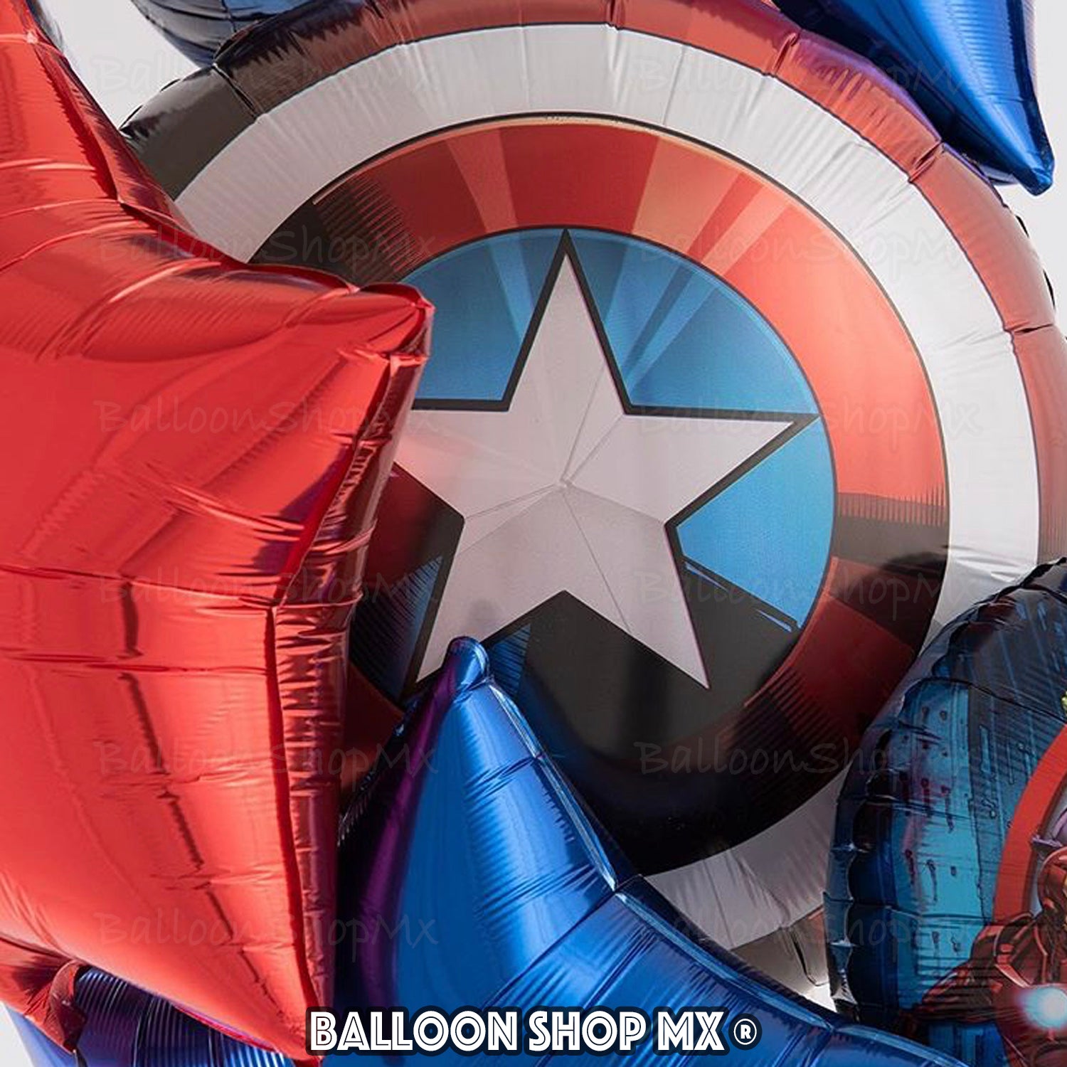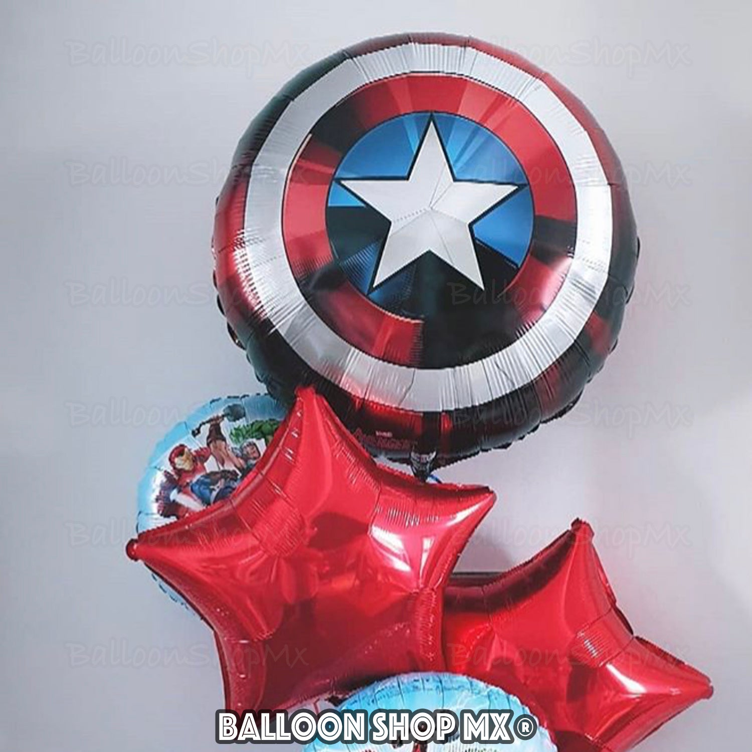 Este globo redondo tiene el diseño del escudo del Capitán América. Viene impreso en colores metálicos con efectos de luz.