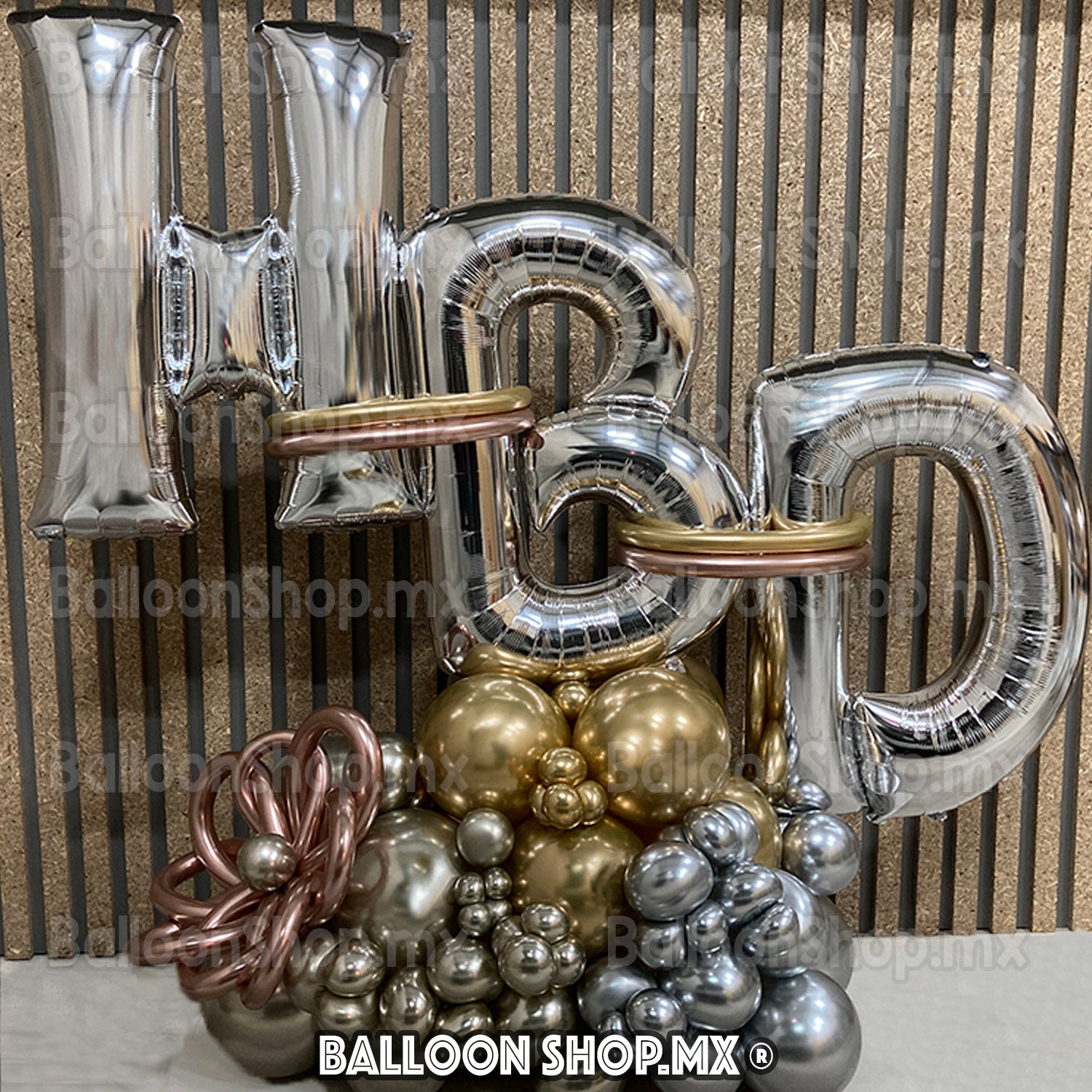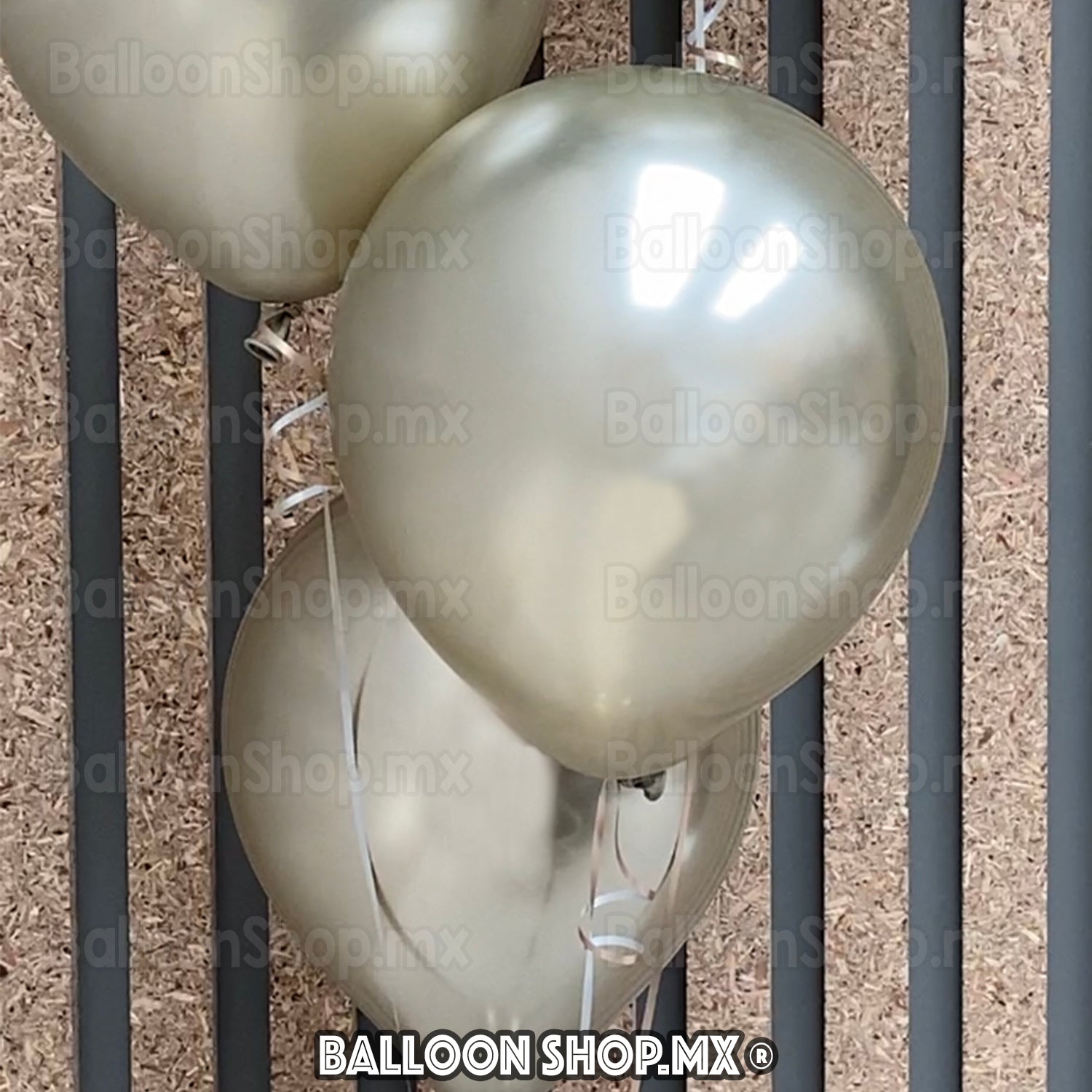 Globo en acabado cromado de color champagne, mide 25 cm de diámetro en la zona más ancha.