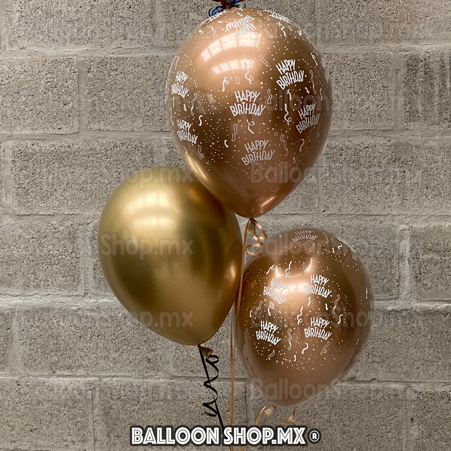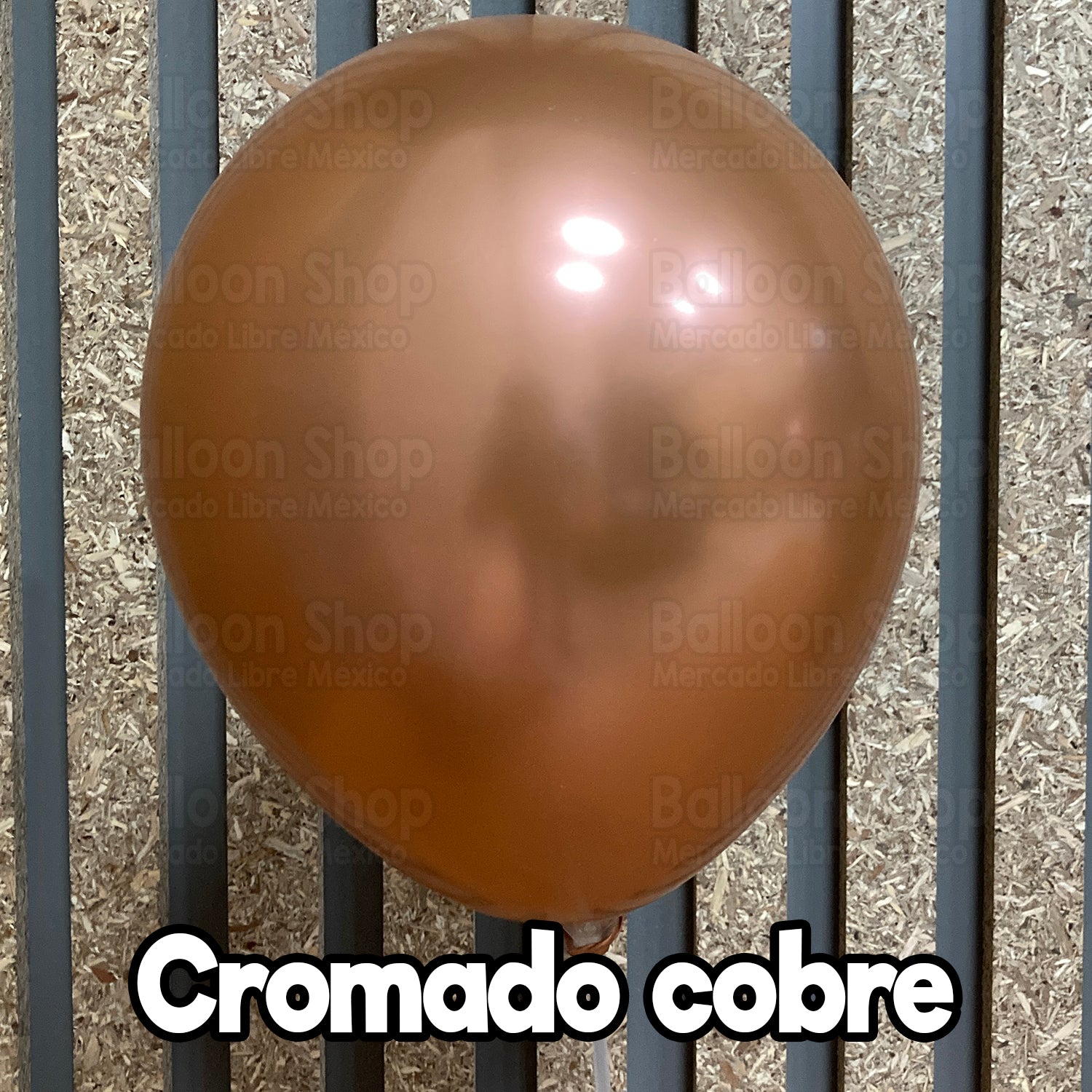 Globo en acabado cromado de color cobre, mide 25 cm de diámetro en la zona más ancha.