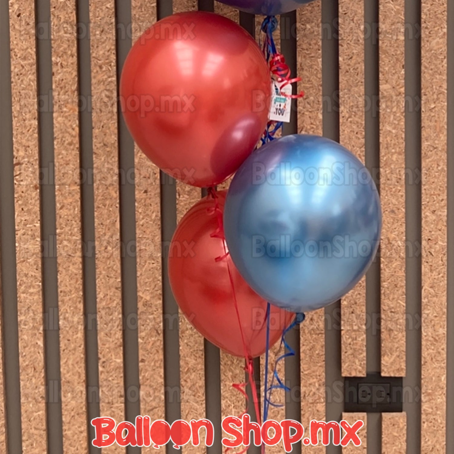 Globo en acabado cromado de color rojo, mide 25 cm de diámetro en la zona más ancha.