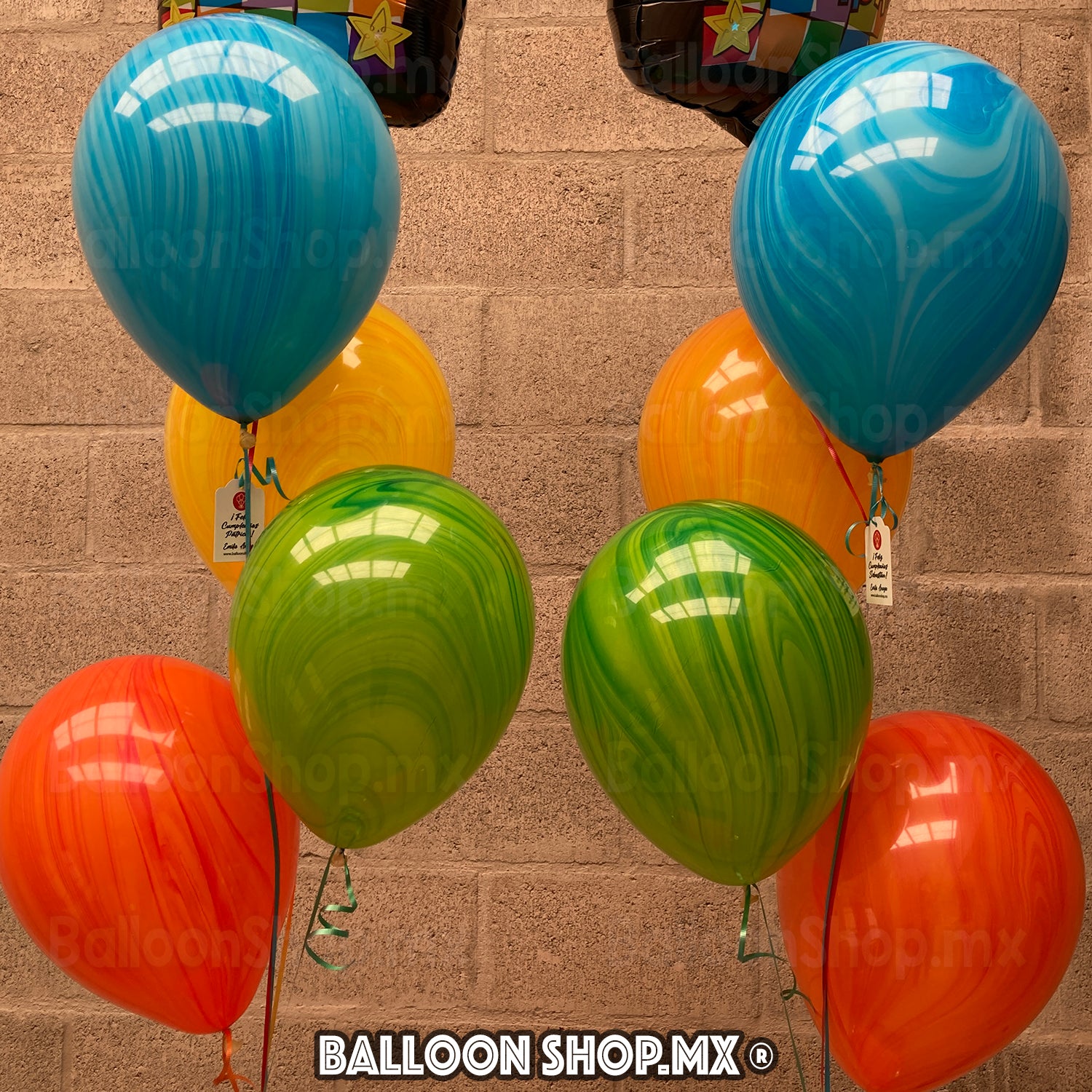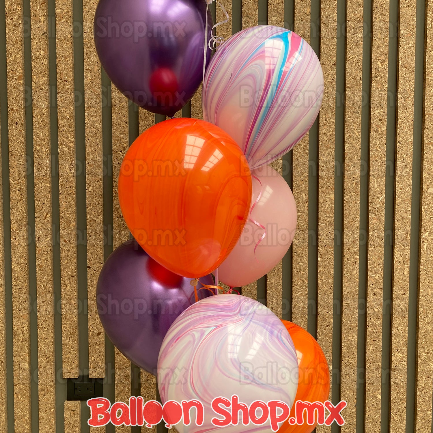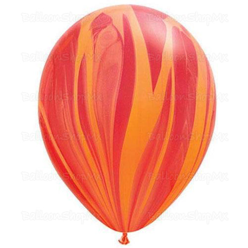 Globo en acabado marmoleado con una mezcla de colores rojo y naranja, estos globos son tratados de una forma especial por lo que no hay dos piezas con el mismo patrón de vetas. Mide 25 cm de diámetro en la zona más ancha. Todos nuestros globos de látex son 100% naturales y biodegradables, se fabrican a partir de la savia de árboles de caucho, sustancia completamente orgánica y totalmente biodegradable.