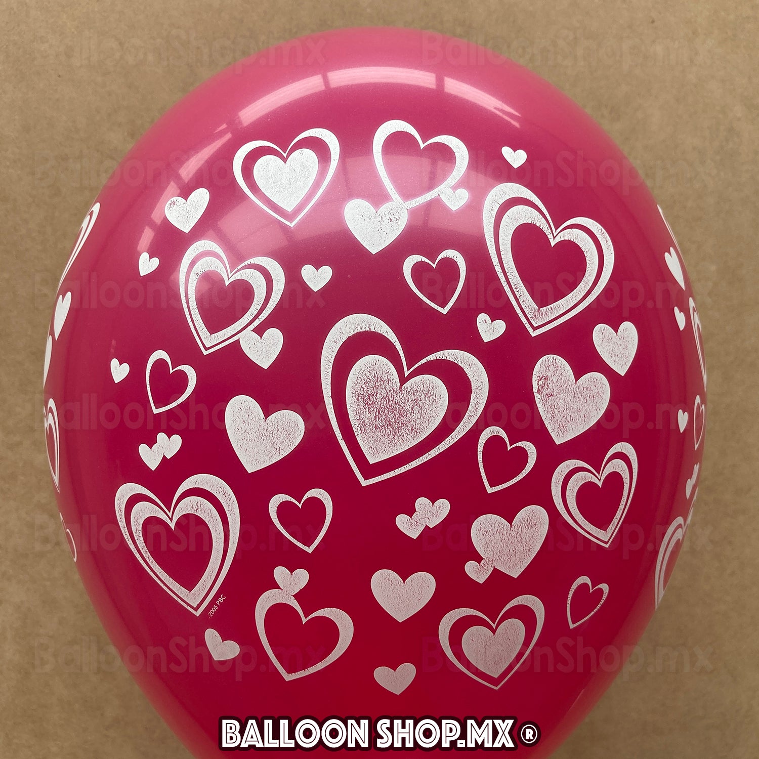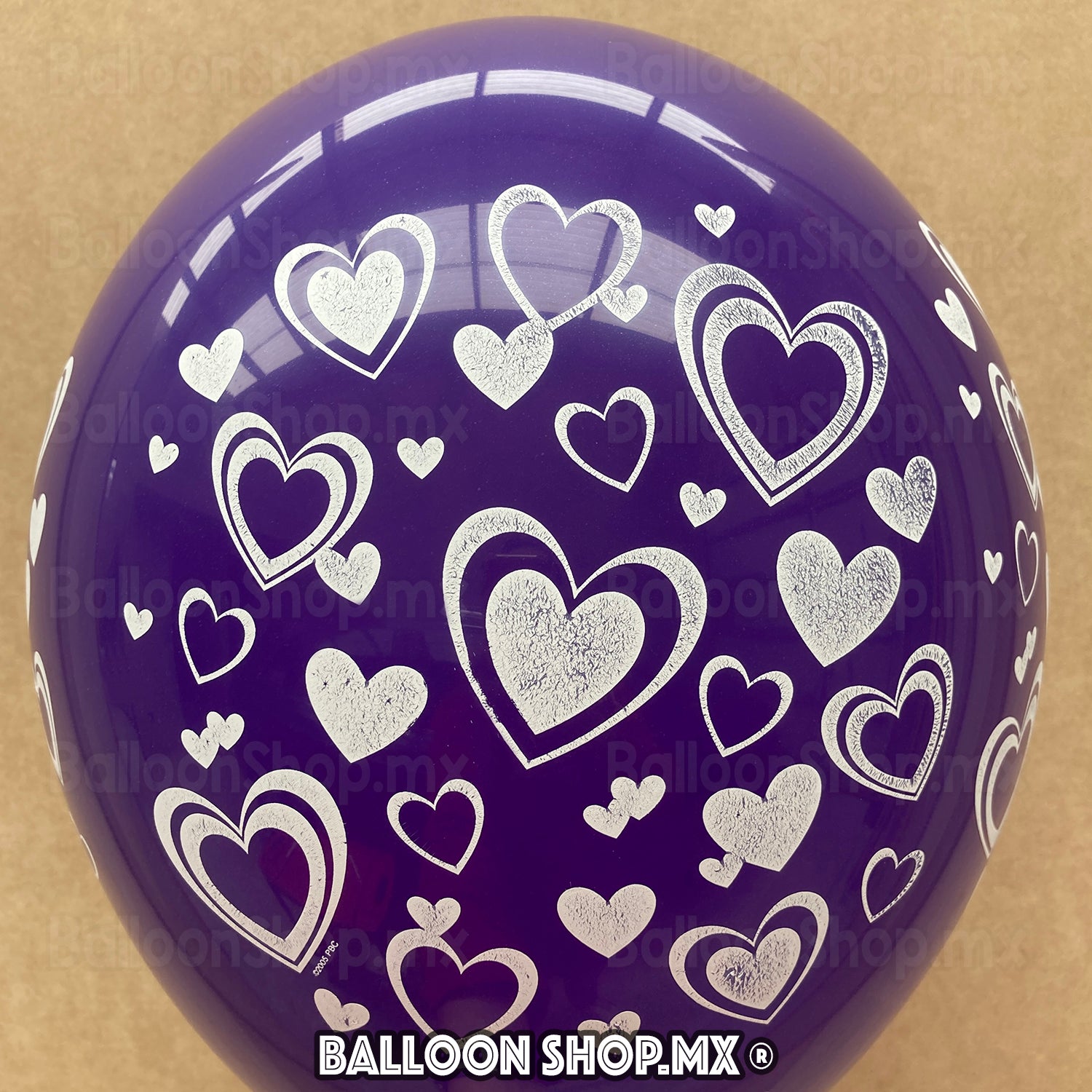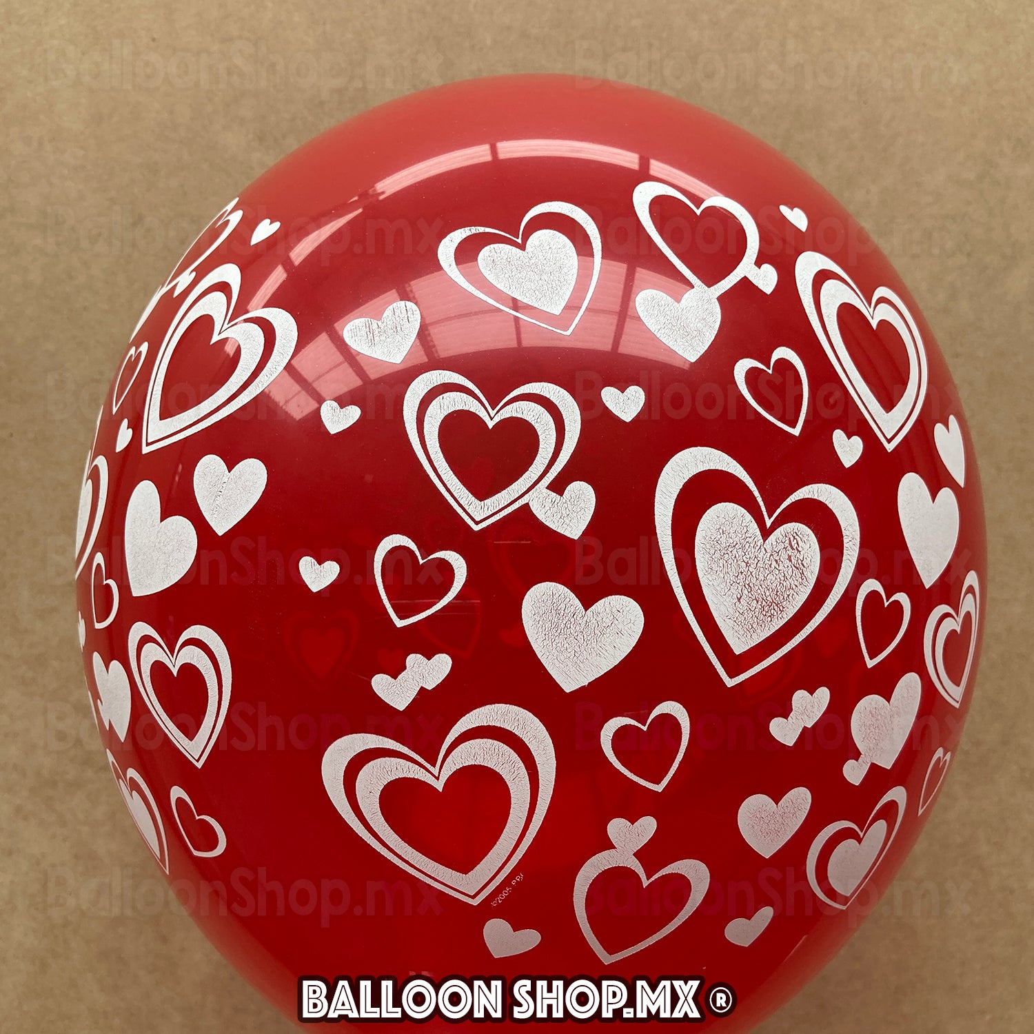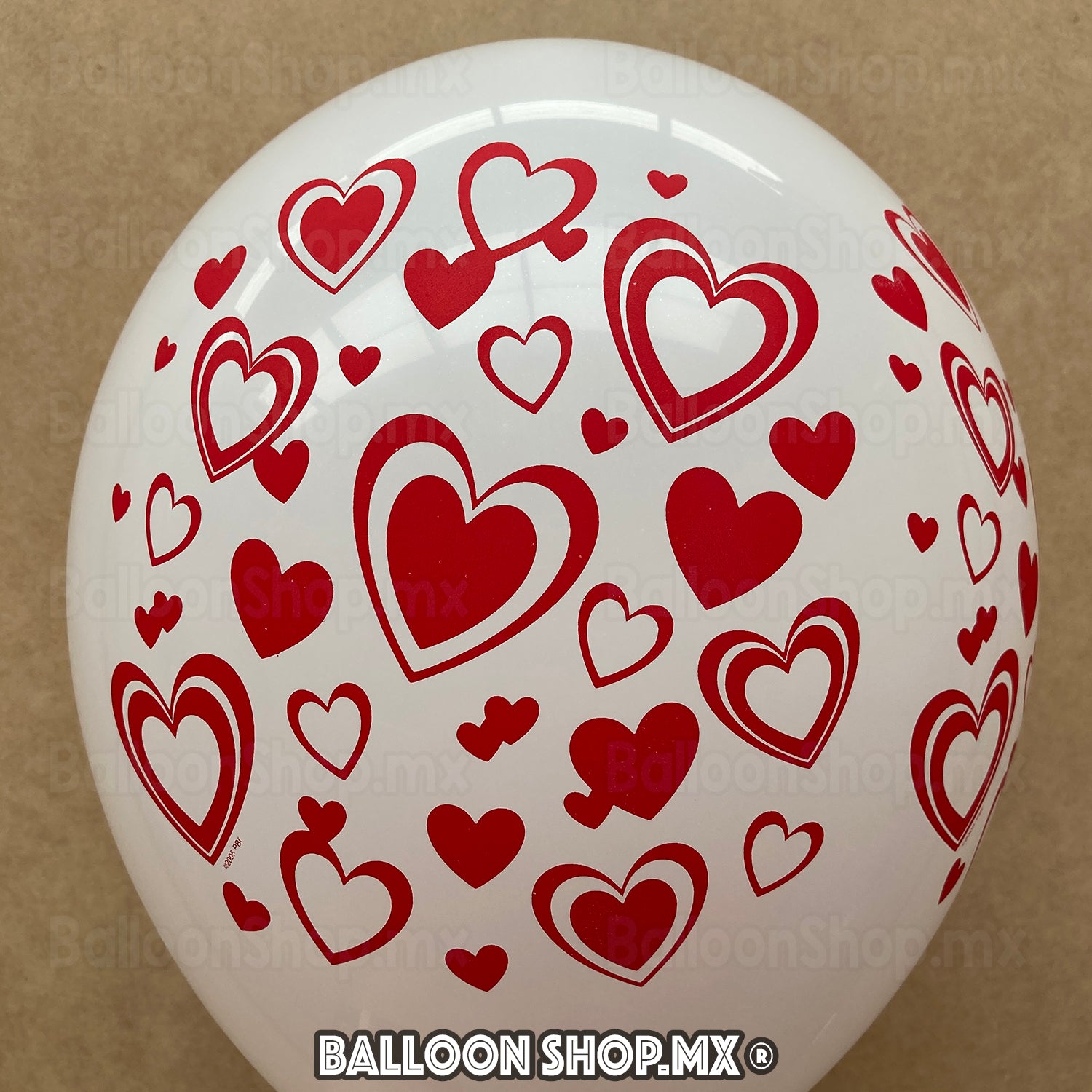 Globo impreso disponible en cinco colores; rojo/blanco, blanco/rojo, morado/blanco, rosa/blanco y fiusha/blanco. Todos nuestros globos de látex son 100% naturales y biodegradables, se fabrican a partir de la savia de árboles de caucho, sustancia completamente orgánica y totalmente biodegradable.