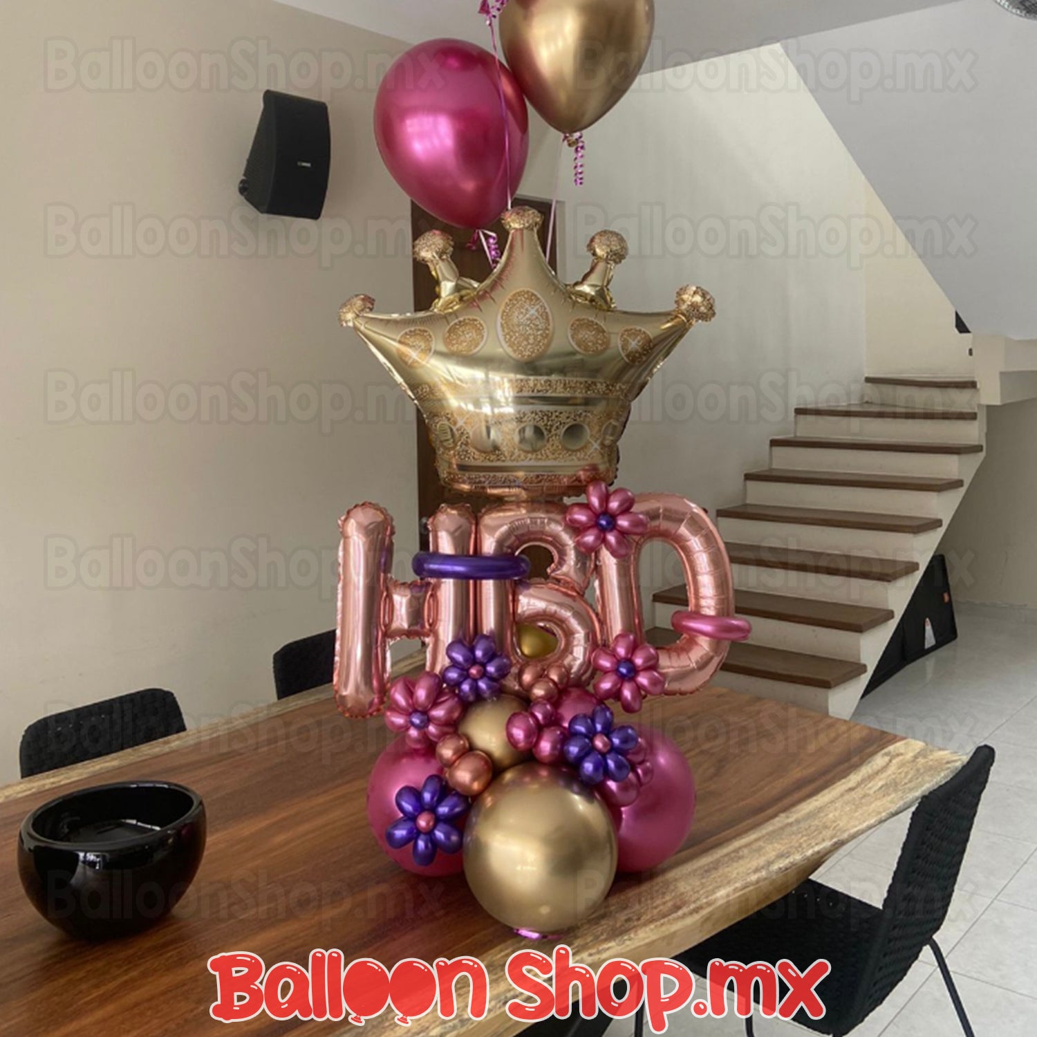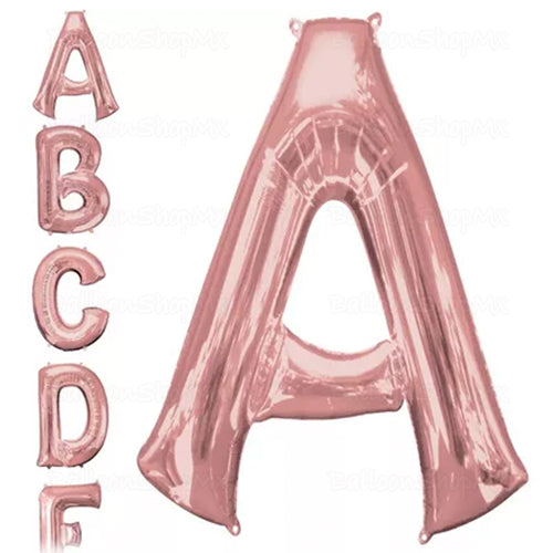 Globo chico con forma de letra en color oro rosa. Tenemos disponible de la A a la Z. En el caso de requerir más de una letra y que vayan unidas en la sección de comentarios puede dejarnos el orden deseado, por ejemplo "HBD". Es importante recalcar que este globo no flota, se infla con aire. Se recomienda principalmente para banners o para colocar en el listón o en la base de un globo grande.