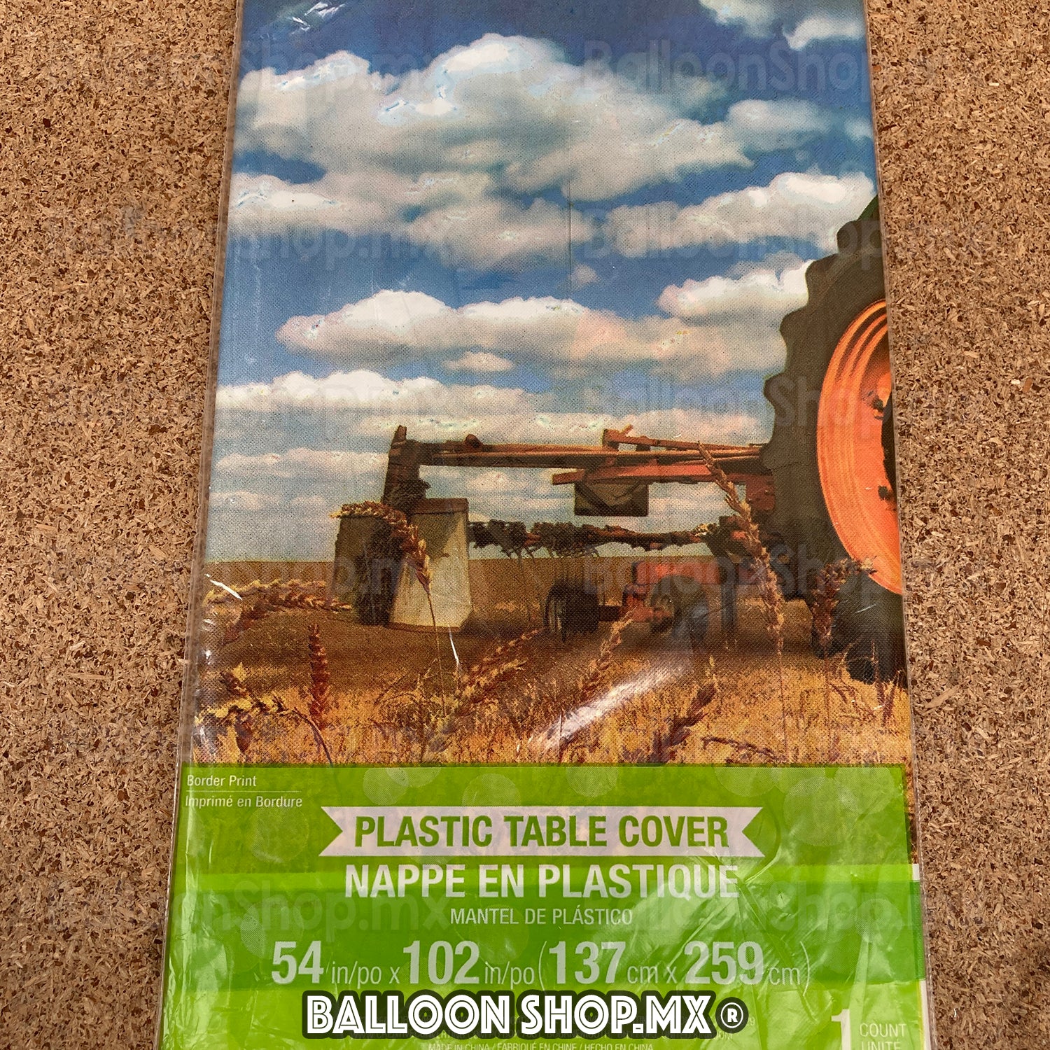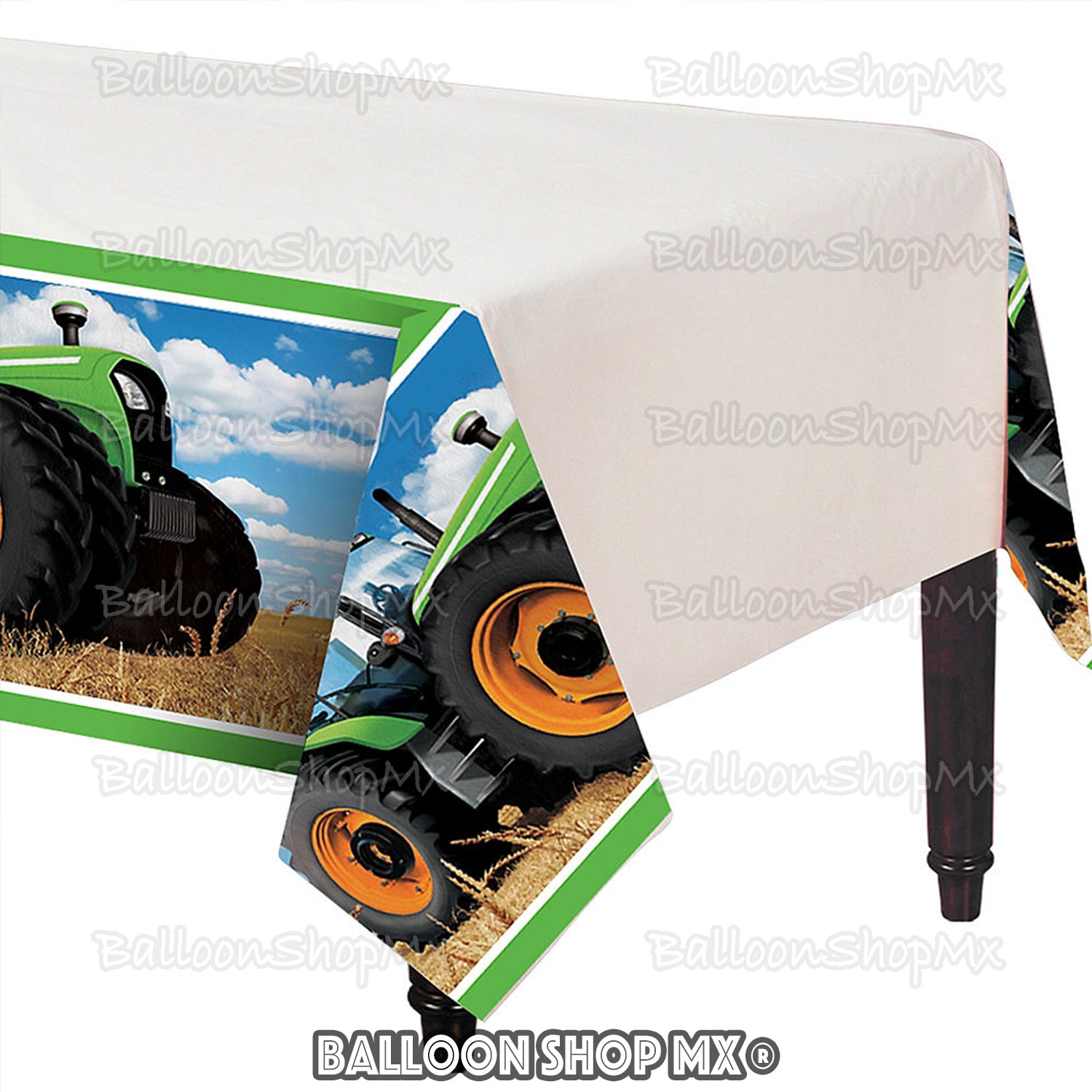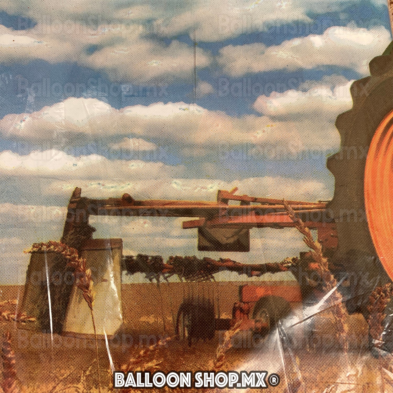 Mantel de tractor agrícola en campo. El centro viene en color blanco completamente liso.