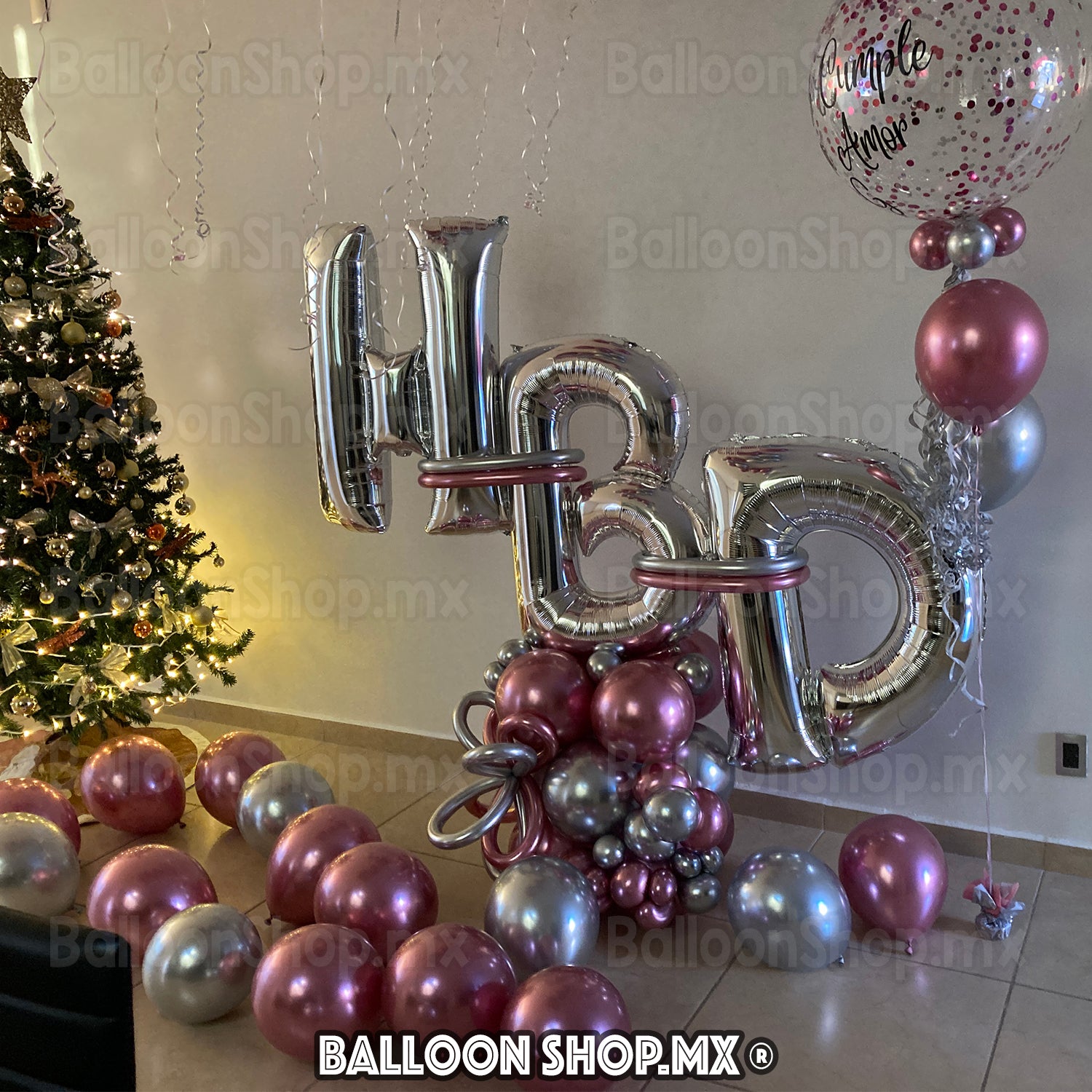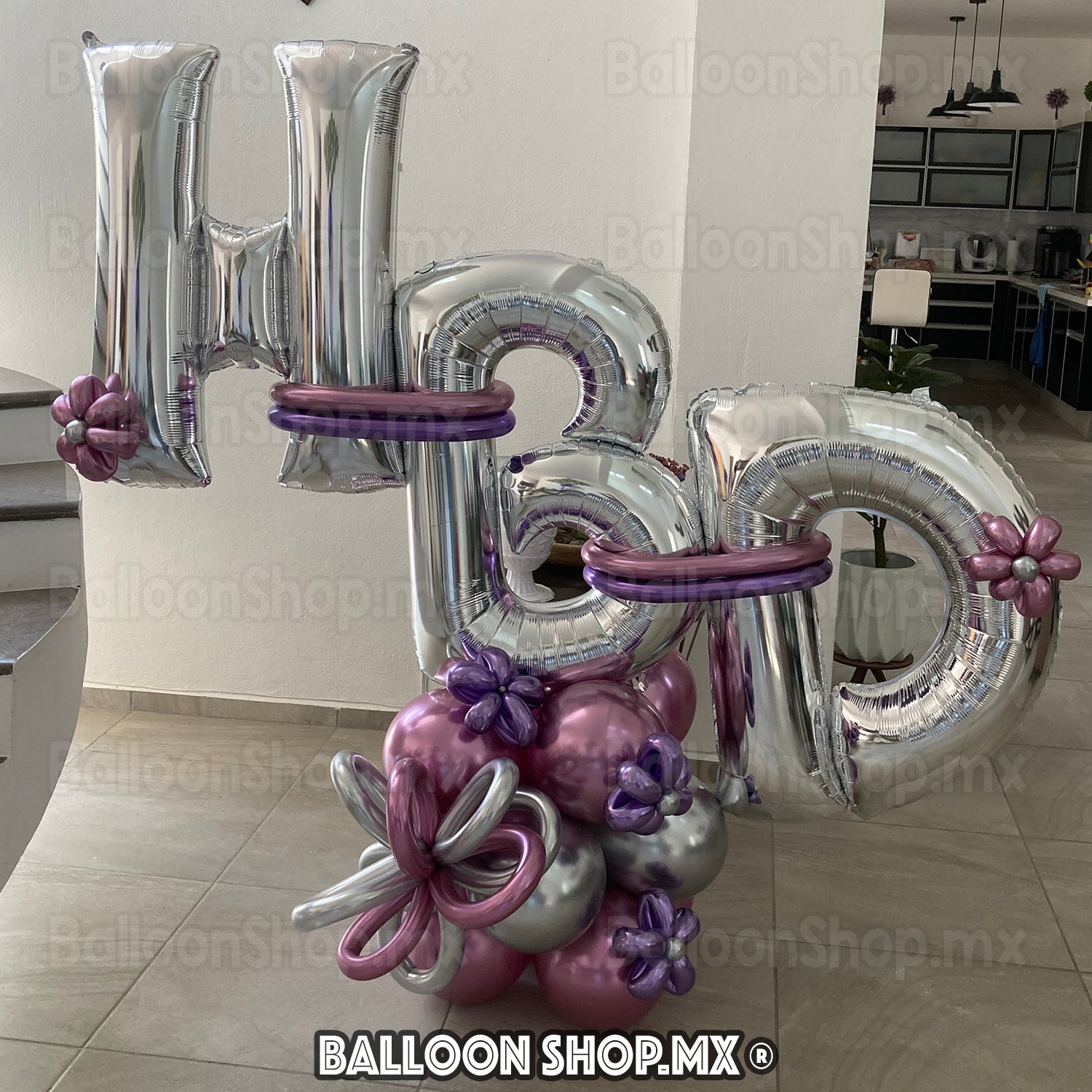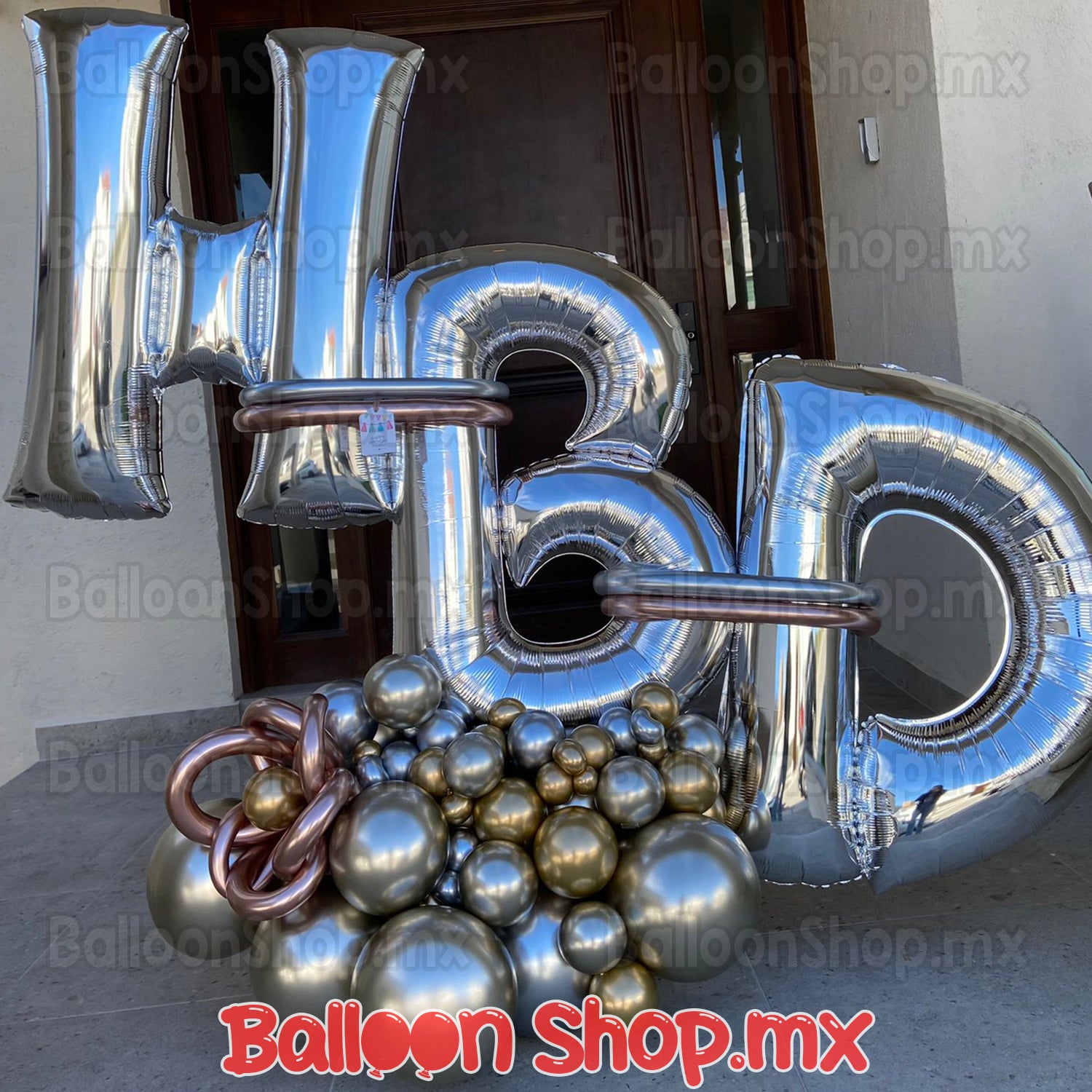 ¡Uno de nuestros arreglos más grandes! Este arreglo se compone de una base decorada de globos de 3 niveles con las letras "HBD" tamaño grande (86 cm). Los colores del maxibouquet son a la carta (84 colores). Un asesor con gusto le ayudara a elegir las mejores combinaciones.