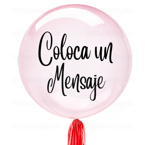 Mini burbuja de 25 centímetros de diámetro en color rosa. Este globo cuenta con un mensaje personalizado en vinil.