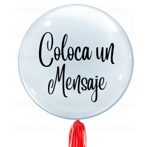 Mini burbuja de 25 centímetros de diámetro en color transparente. Este globo cuenta con un mensaje personalizado en vinil.