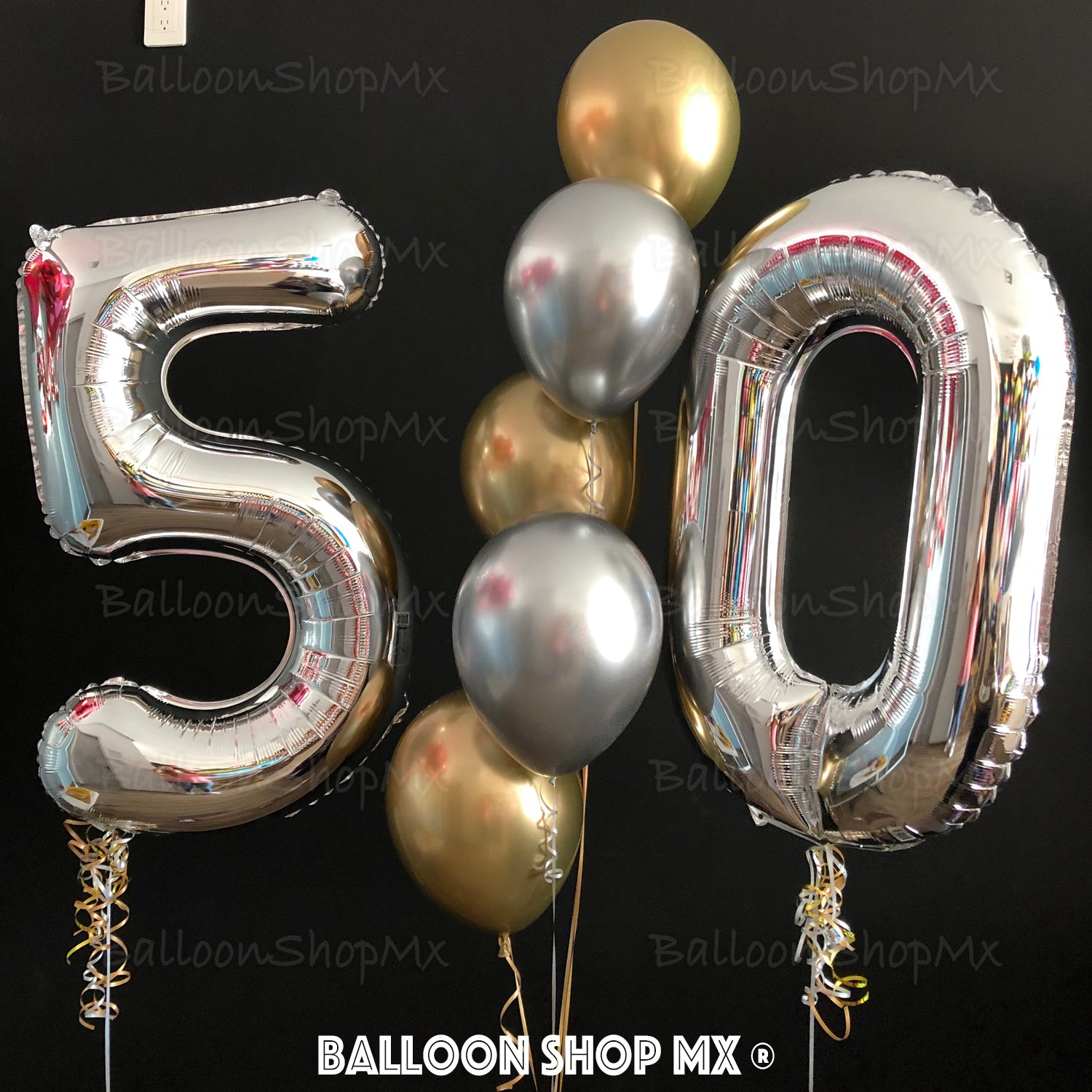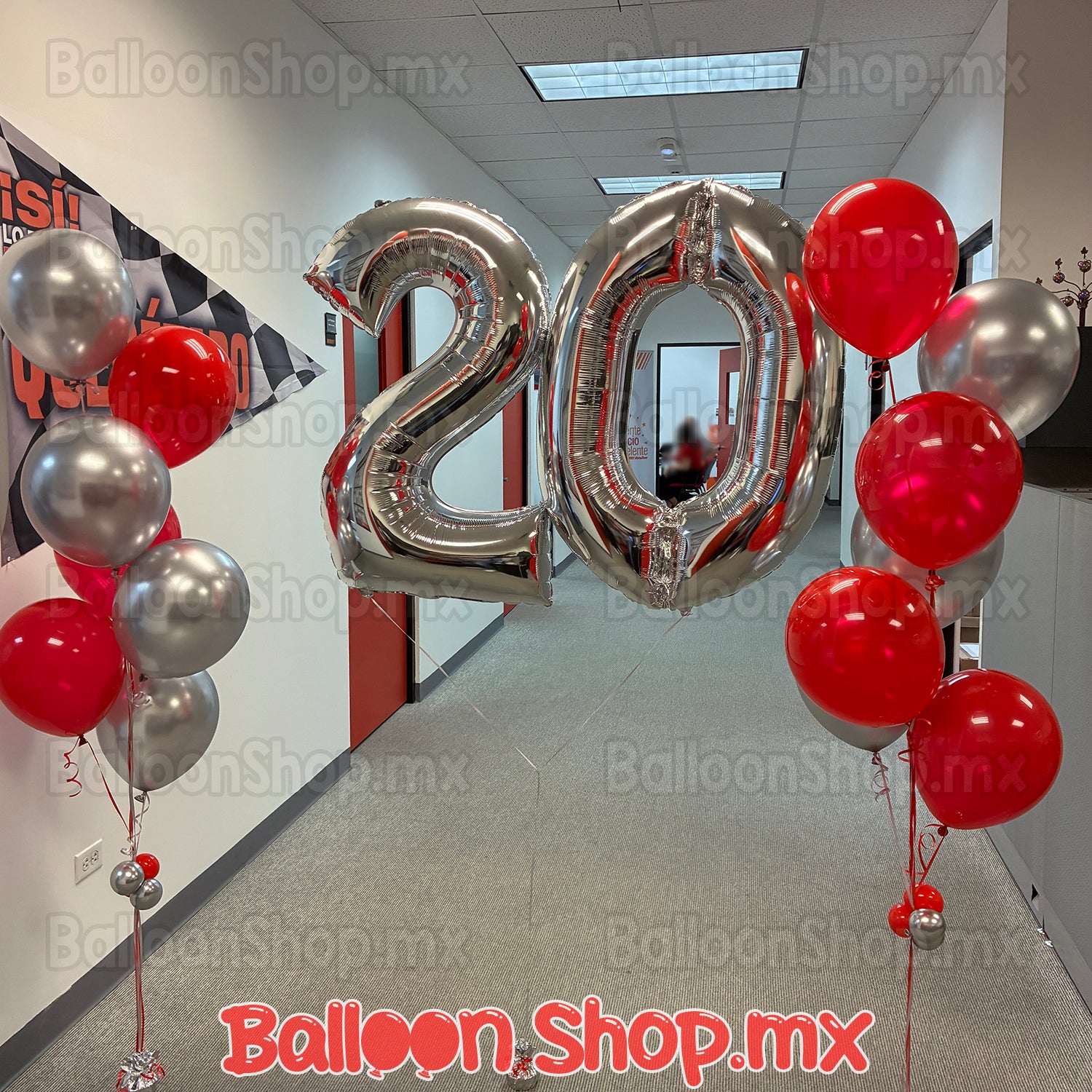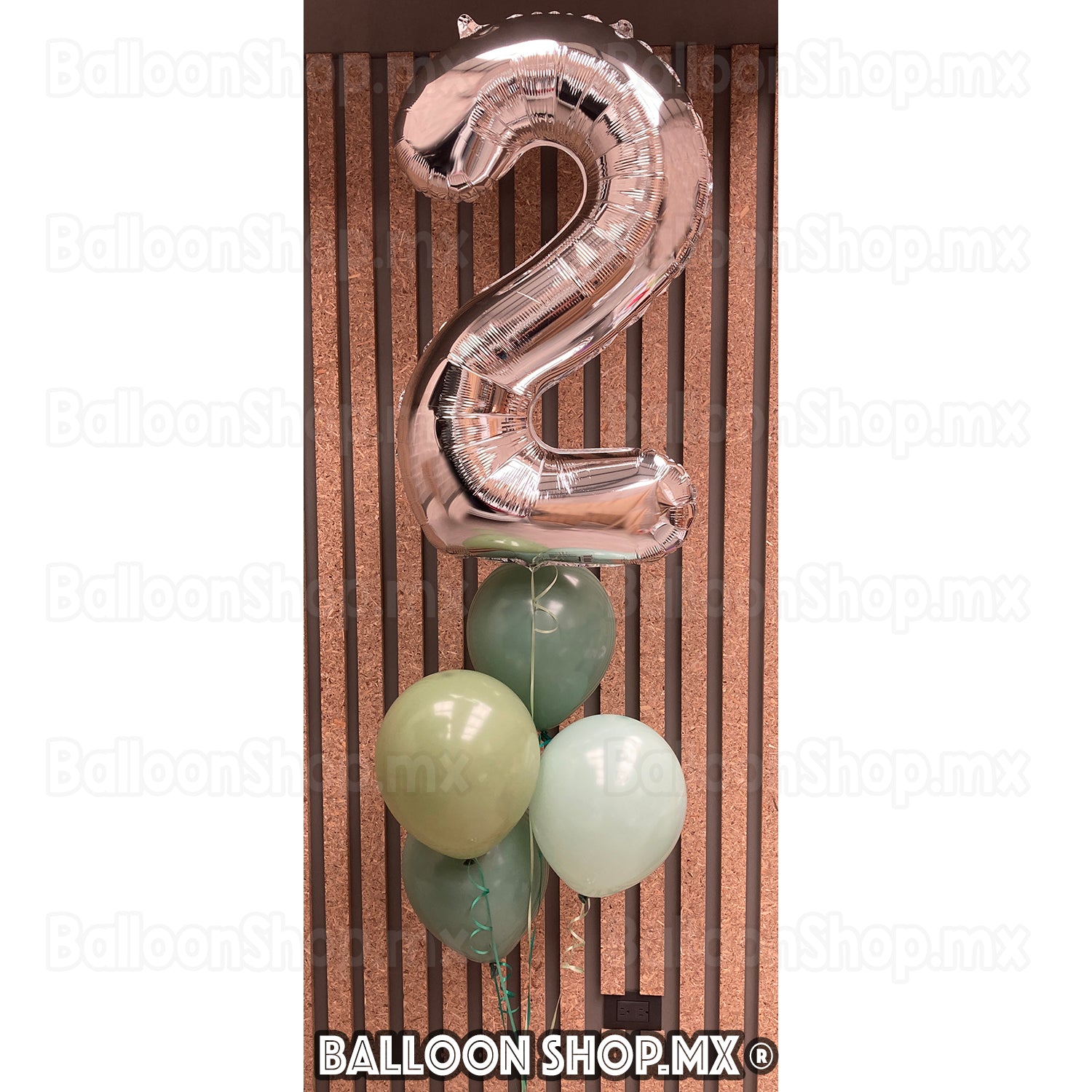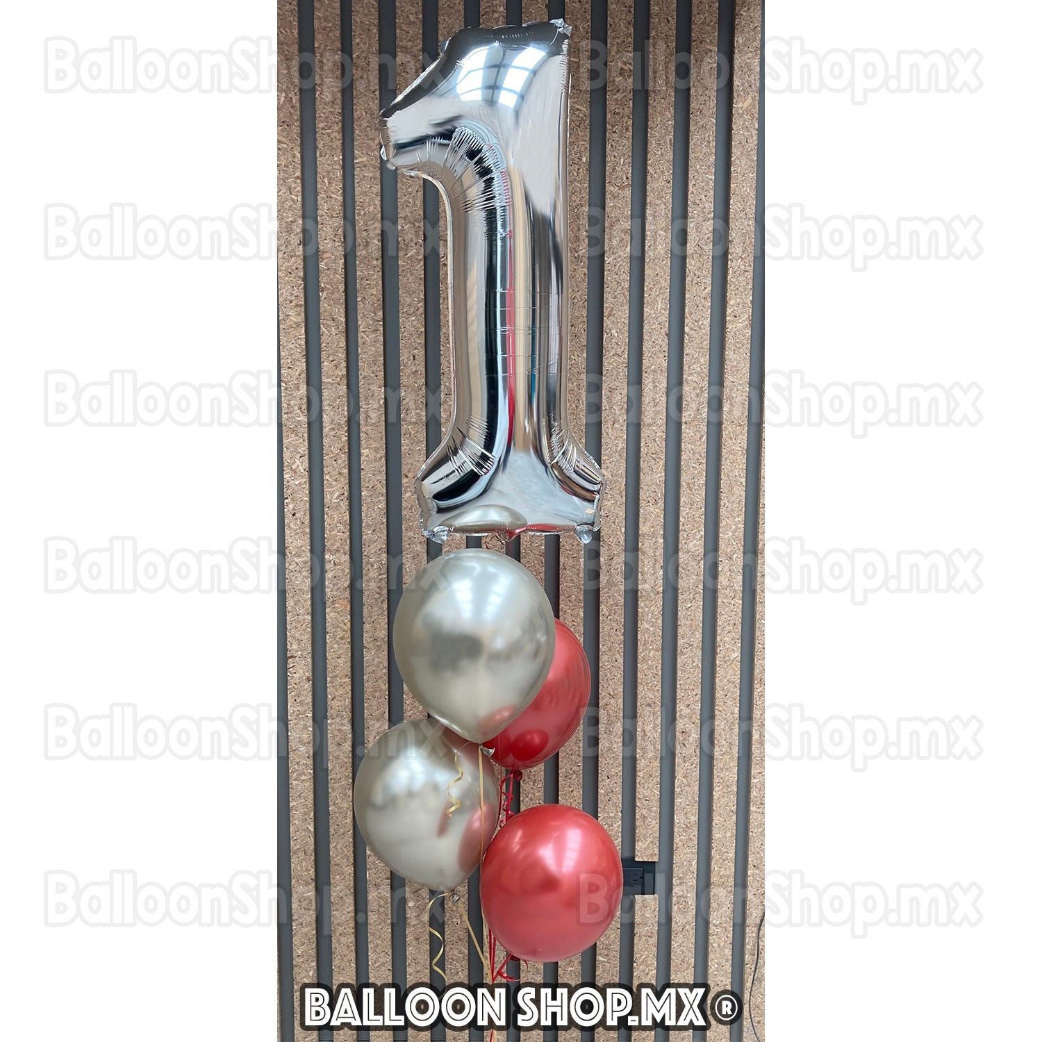 Si desea agregar globos de látex puede ser en un contrapeso separado o en la parte inferior del número. Recomendamos de 3 a 4 globos. Cualquier duda puede contactar a un asesor.
