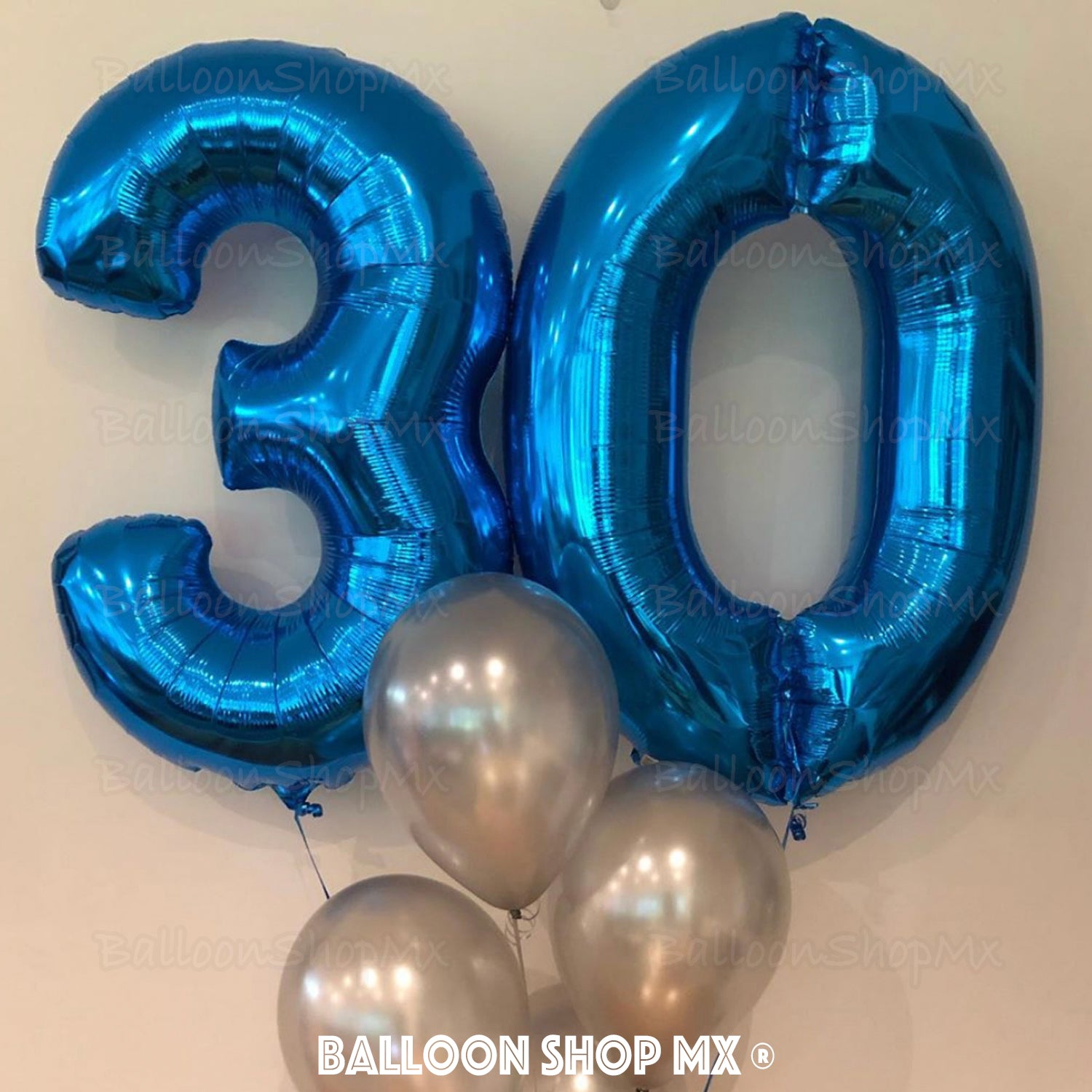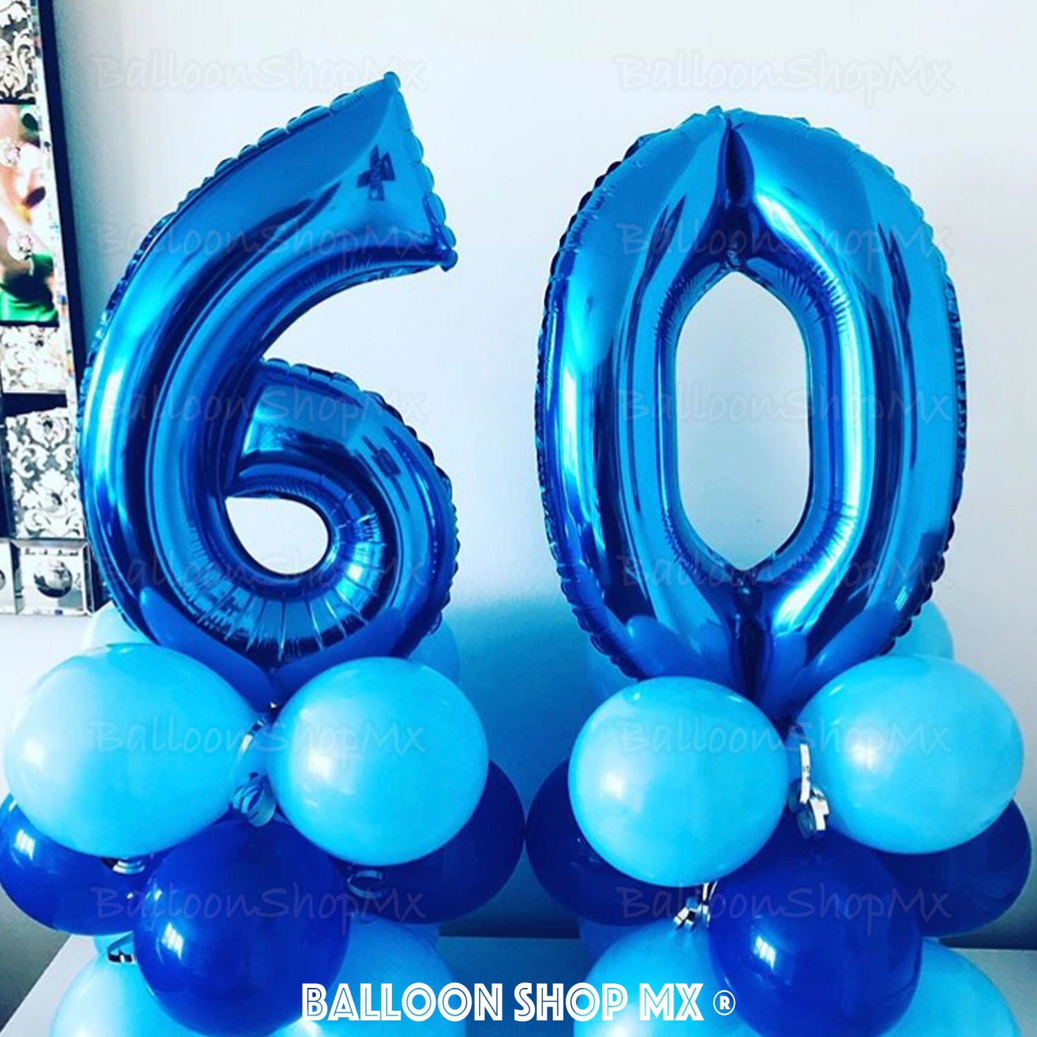 Globo grande con forma de número en color azul. Tenemos disponible del 0 al 9. En el caso que requiera dos números puede pedirlos separados o juntos, es decir para un "27", podemos entregar un 2 y un 7 como arreglos independientes o un 27 en un solo arreglo. Es importante que en área de comentarios nos lo haga saber, así como confirmarnos el número correcto, en el mismo ejemplo si es 27 ó 72.