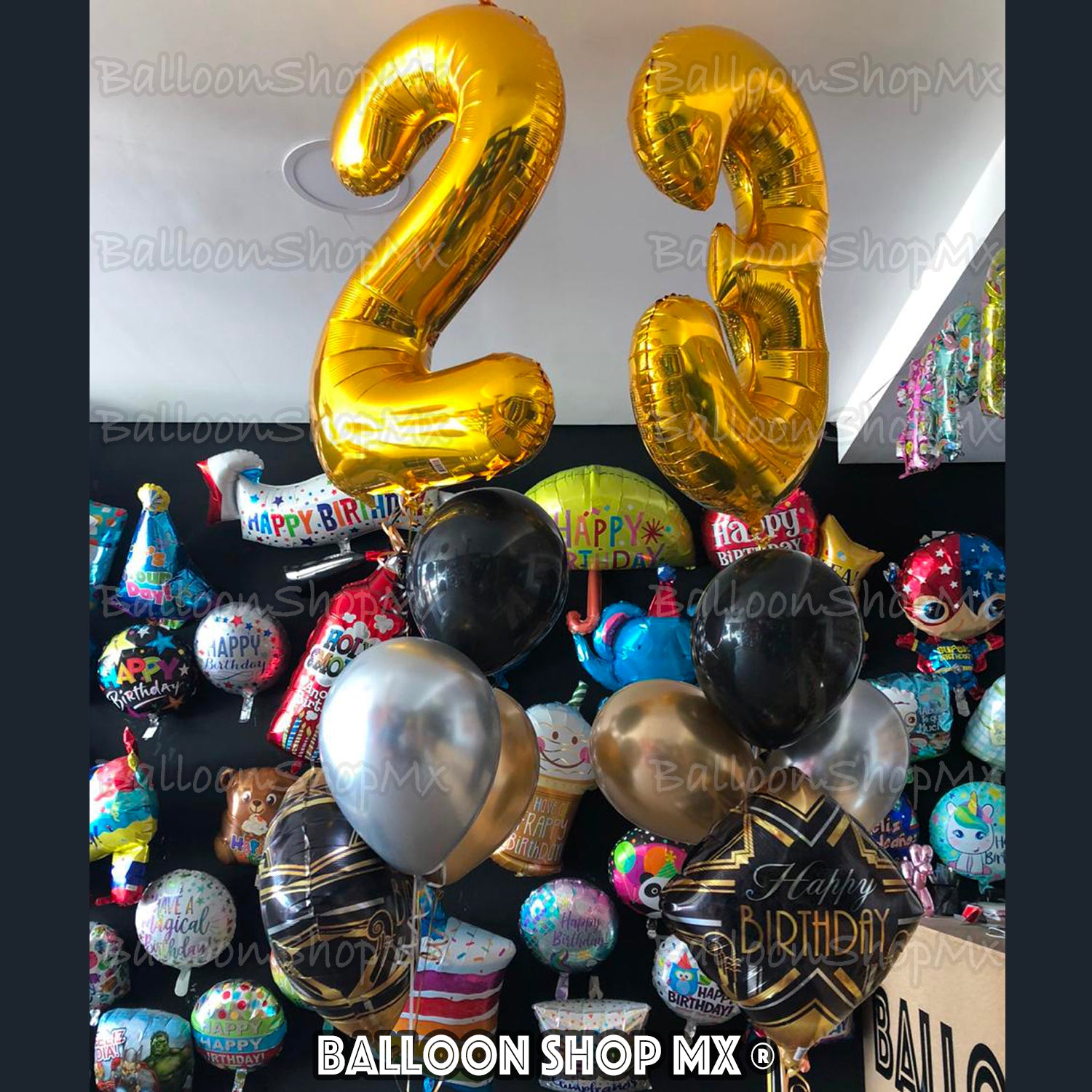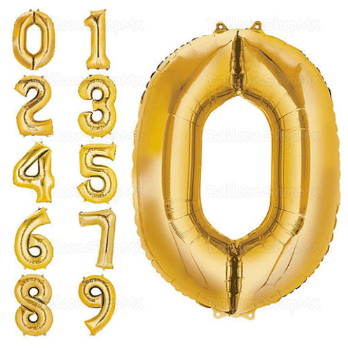 Globo grande con forma de número en color dorado brillante. Tenemos disponible del 0 al 9. En el caso que requiera dos números puede pedirlos separados o juntos, es decir para un "27", podemos entregar un 2 y un 7 como arreglos independientes o un 27 en un solo arreglo. Es importante que en área de comentarios nos lo haga saber, así como confirmarnos el número correcto, en el mismo ejemplo si es 27 ó 72.