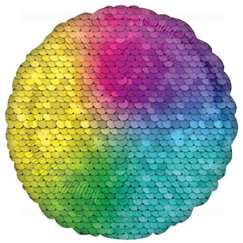 Globo de 18" redondo en acabado metálico brillante con los colores del arcoíris decorado con un patrón de escamas.