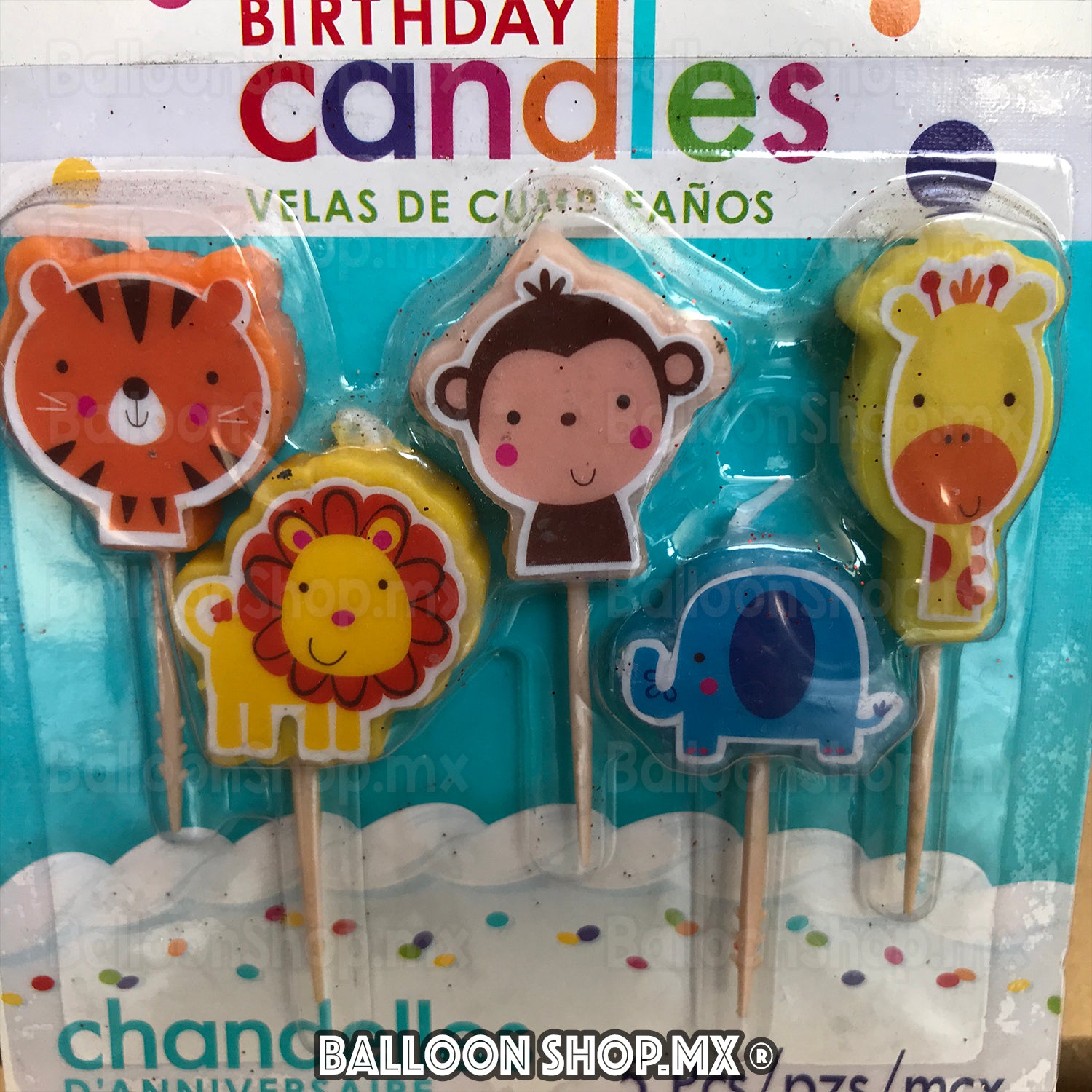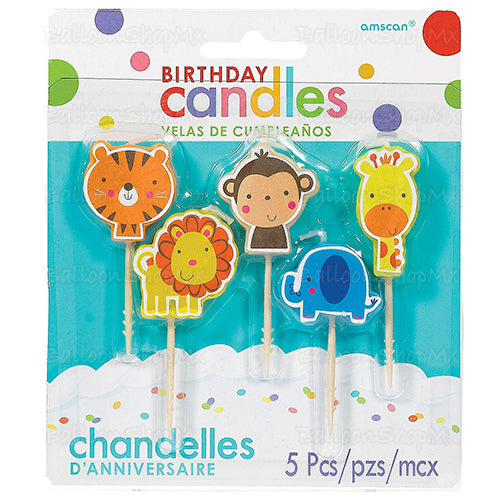 Kit de 5 velitas de animales decoradas a todo color y con muchos detalles. Cada velita trae un palito para enterrarse en el pastel.